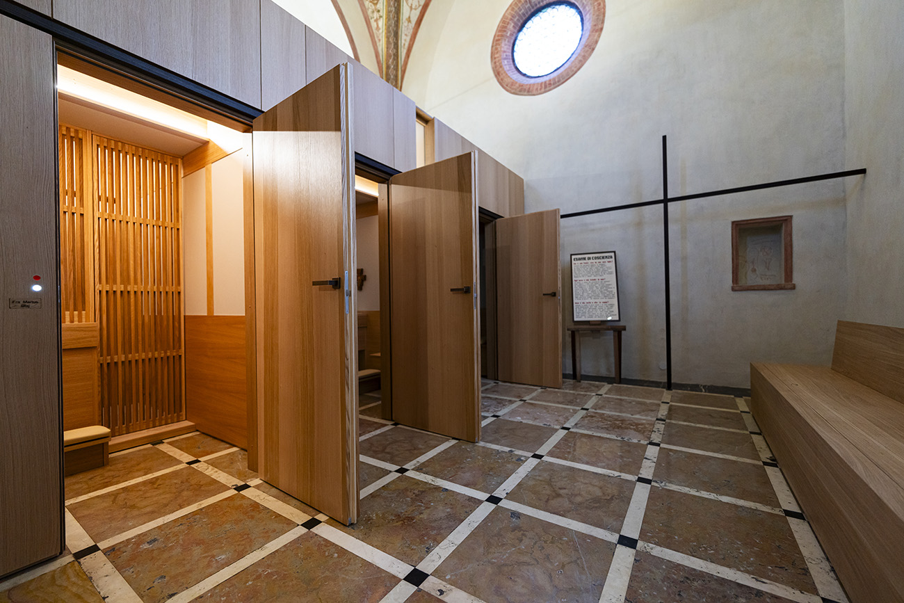 Il progetto aveva l'obiettivo di trasformare lo spazio della penitenzieria, rimuovendo i confessionali esistenti per creare un ambiente più intimo e riservato, dedicato alla preghiera. Tra le priorità del progetto, anche il restauro degli affreschi e la creazione di arredi lignei armonizzati con la struttura architettonica della chiesa.