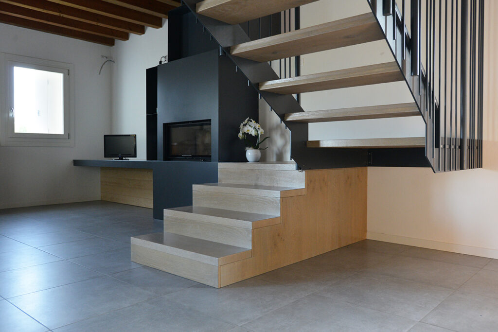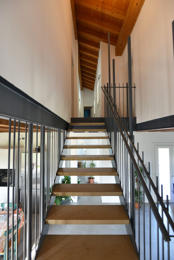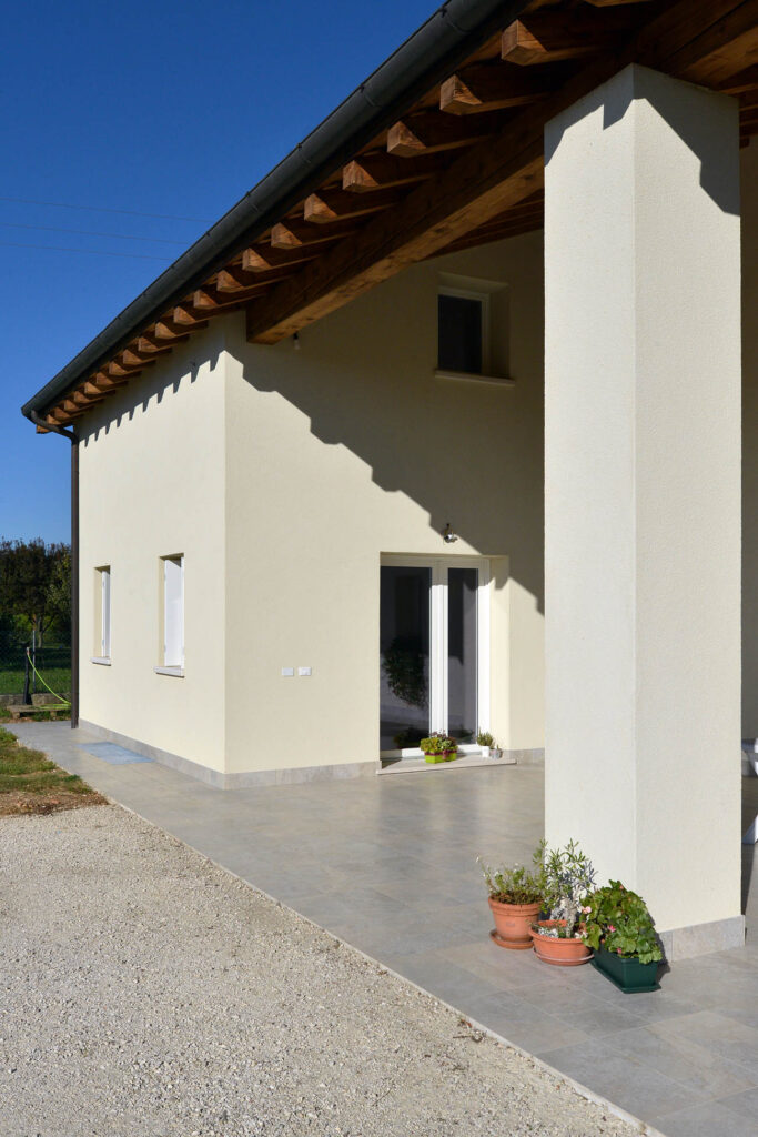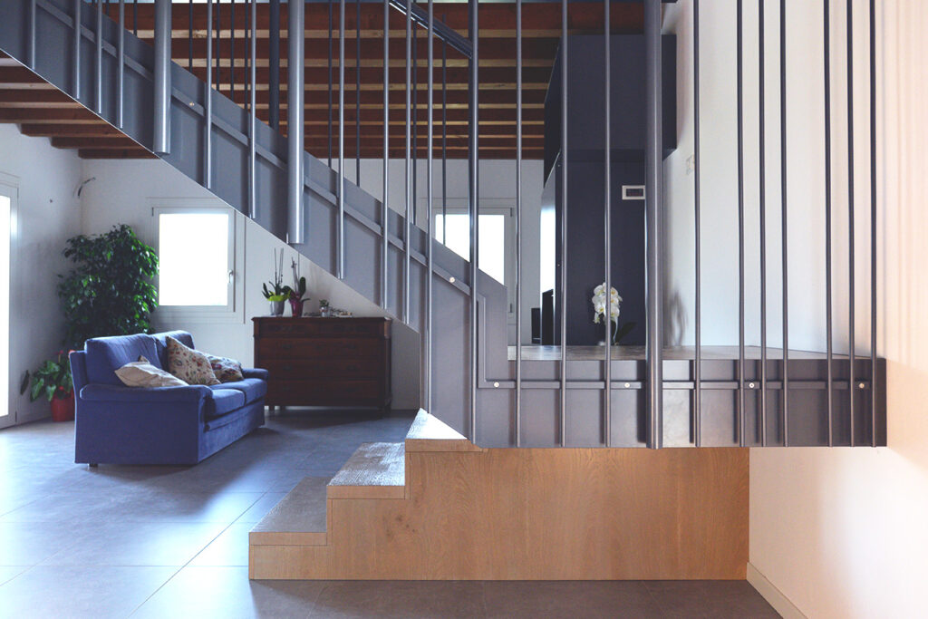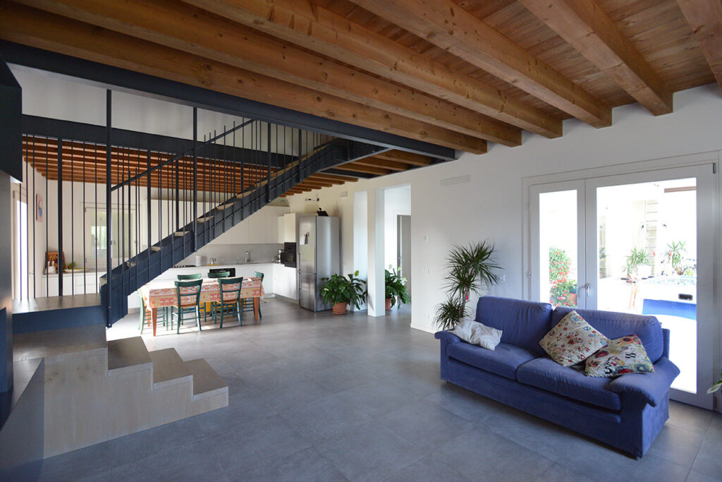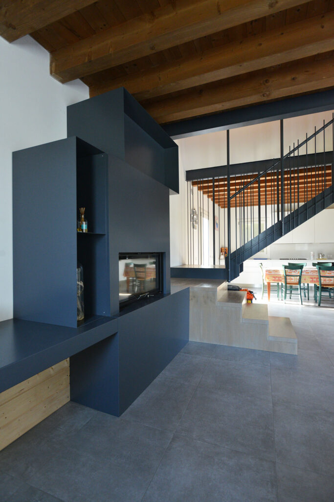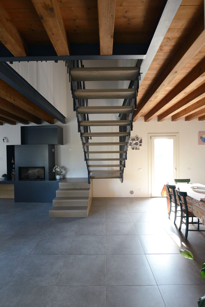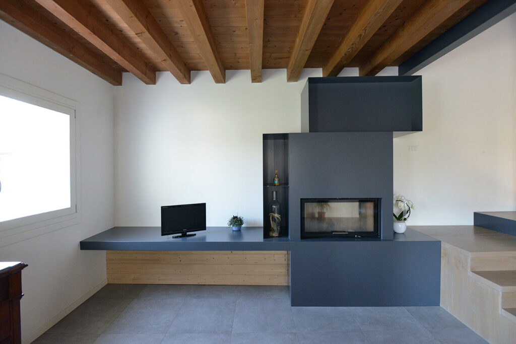 Una residenza privata che nasce da una ristrutturazione radicale di un antico edificio agricolo, tipico delle campagne trevigiane. Preservando le volumetrie e le proporzioni originali, il progetto combina elementi tradizionali, come travi a vista e serramenti in legno, con soluzioni contemporanee. Il cuore della casa è un sistema scala-camino-seduta che genera lo spazio open space e si apre verso il giardino e il portico travato, garantendo luminosità naturale tutto l'anno.