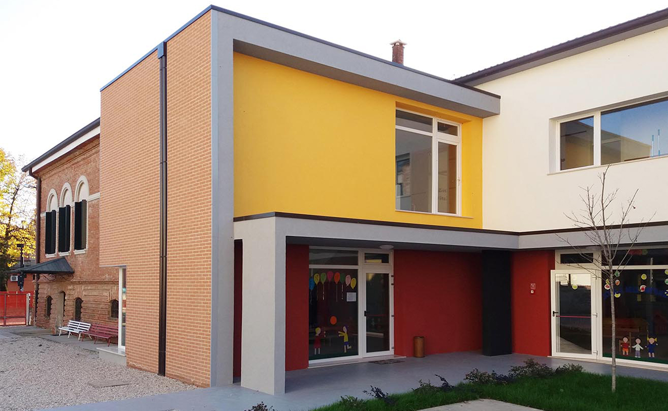Il progetto di restauro e ampliamento della scuola dell'infanzia Appiani di Fanzolo valorizza un edificio storico di oltre cento anni, rispettando le superfici e i materiali originali.